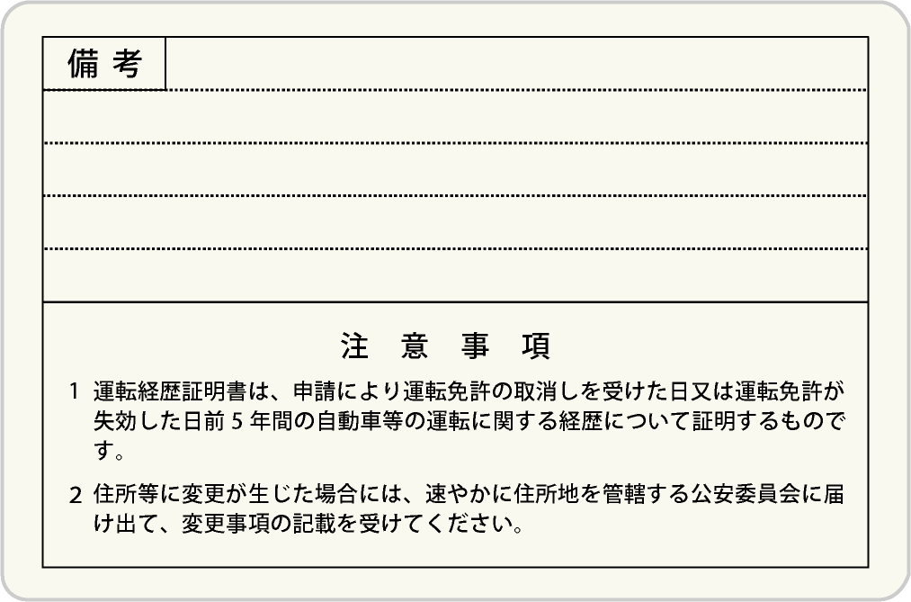 (ご自身による手書きでの変更は認められておりません) - 公安委員会より配布された「更新手続き中」のシール貼付がされている場合や、裏面(備考欄)の変更記載が1枚の画像で確認できない場合はご利用いただけません